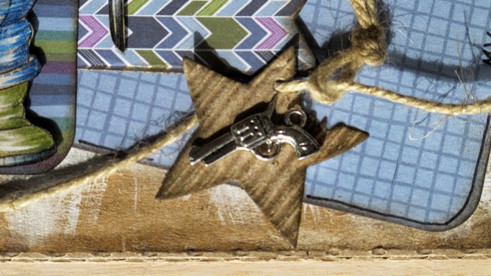 Howdy, here is my second project for Vilda stamps this month.  I used again some piece of a cardboard box for the card and put some gesso on it. This time some PL card from the rain collection. A fun door sign for a boys room using the following stamps V687 and V619